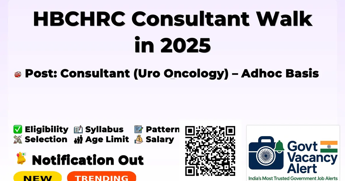 Details Information Organization Name Homi Bhabha Cancer Hospital & Research Centre, New Chandigarh (Tata Memorial Centre) Post Name Consultant (Uro Oncology) – Adhoc Basis Total Vacancies 01 Post Salary/Pay Scale Rs. 1,44,000/- to Rs. 1,52,000/- per month (Gross) Educational Qualification M.Ch. (Urology)/M.Ch. (Surgical Oncology) or equivalent postgraduate degree recognized by National Medical Commission Age Limit Upto 45 years (Relaxable as per Govt. of India rules) Walk-in Interview Date 26/11/2025 Reporting Time 09:30 A.M. to 11:30 A.M. Application Mode Walk-in Interview Official Website tmc.gov.in