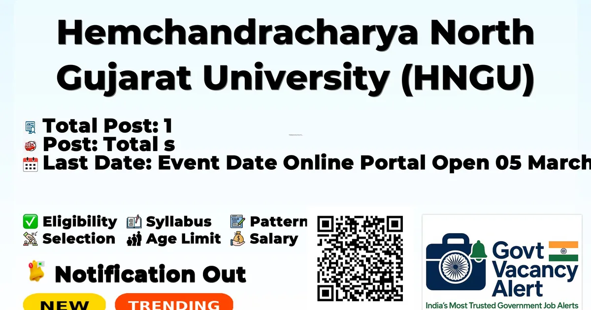 Company Name Hemchandracharya North Gujarat University (HNGU) Post Name Assistant Registrar No of Posts 1 Advt No 35 / 2026 Salary Rs. 53100 Per Month Last Date 25 March 2026 Apply Mode Online Job Type Full Time