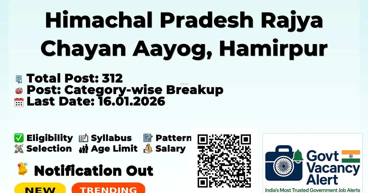 Company Name Himachal Pradesh Rajya Chayan Aayog, Hamirpur (HPRCA) Post Name Assistant Staff Nurse No of Posts 312 Salary ₹25,000/- per month (Fixed monthly honorarium) Qualification B.Sc. Nursing with 50% marks/GNMA Grade Nursing Diploma with 50% marks Age Limit 21 to 32 years Start Date for Apply 12.12.2025 Last Date for Apply 16.01.2026 Official Website https://hprca.hp.gov.in