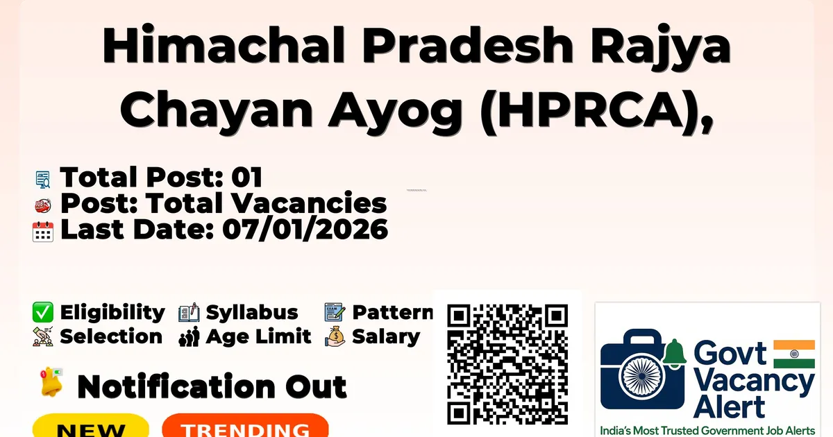 Himachal Pradesh Rajya Chayan Ayog Hamirpur (HPRCA) has released an official notification for the recruitment of 01 Scientific Assistant Posts. Interested and eligible candidates can apply Online through the official HPRCA website. The last date to submit the application form is 07-01-2026. In this article, you’ll find the HPRCA Scientific Assistant Posts recruitment details, including eligibility criteria, age limit, salary structure, selection process, application steps, and direct links to the official notification and Online application form.