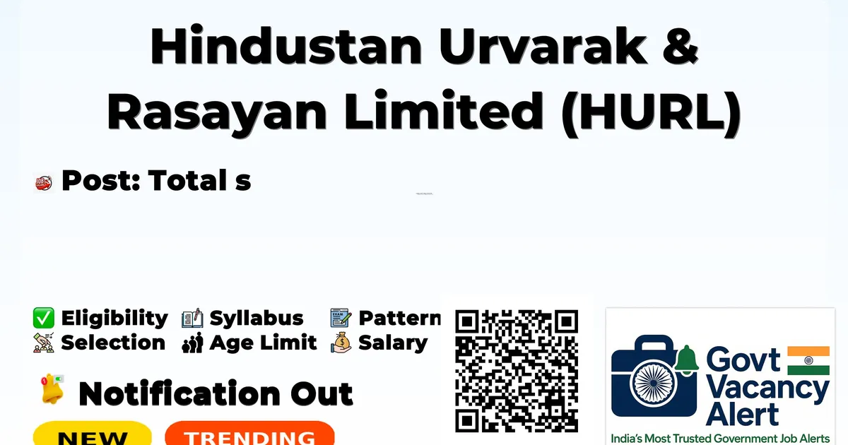 Hindustan Urvarak and Rasayan (HURL) Recruitment 2026 for 01 posts of Medical Officer. Candidates with MBBS Can attend the walkin. The Walk-in interview on 20-02-2026. For detailed information please visit HURL official website, https://www.hurl.net.in/.
