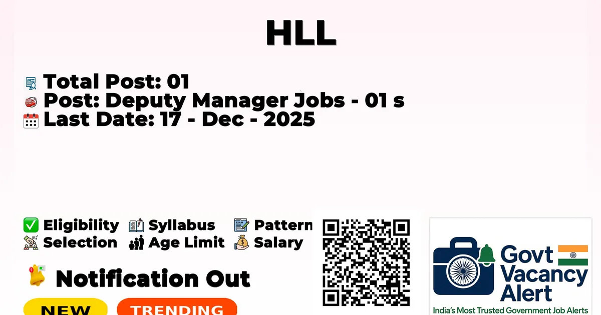 HLL Lifecare (HLL) has declared the official notification for 2025. To fill up the vacancies for Deputy Manager Jobs. Those candidates who have qualified in the MBBS, BDS, BAMS, and BHMS can grab this chance and apply for the HLL Recruitment 2025. Here we include the age limit, selection process, salary structure, education details, application fee, and how to apply for these posts. Interested and eligible candidates should apply before the last date of application.