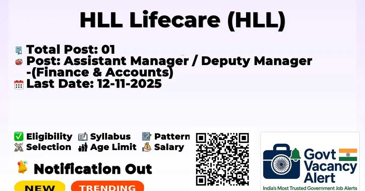 Company Name HLL Lifecare (HLL) Post Name Assistant Manager / Deputy Manager (Finance & Accounts) No of Posts 01 Pay Matrix Rs 20000 to 45000 Qualification CA, MBA/PGDM Age Limit 40 years Start Date for Apply 28-10-2025 Last Date for Apply 12-11-2025 Official Website lifecarehll.com