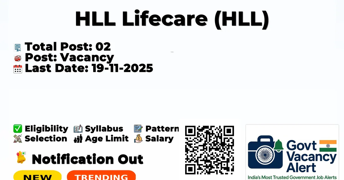 Company Name HLL Lifecare (HLL) Post Name Officer, Accounts Officer No of Posts 02 Salary Rs. 12000-29500 Qualification B.Com, CA, M.Com, M.Sc Age Limit 40 years Last Date for Apply 19-11-2025 Official Website lifecarehll.com