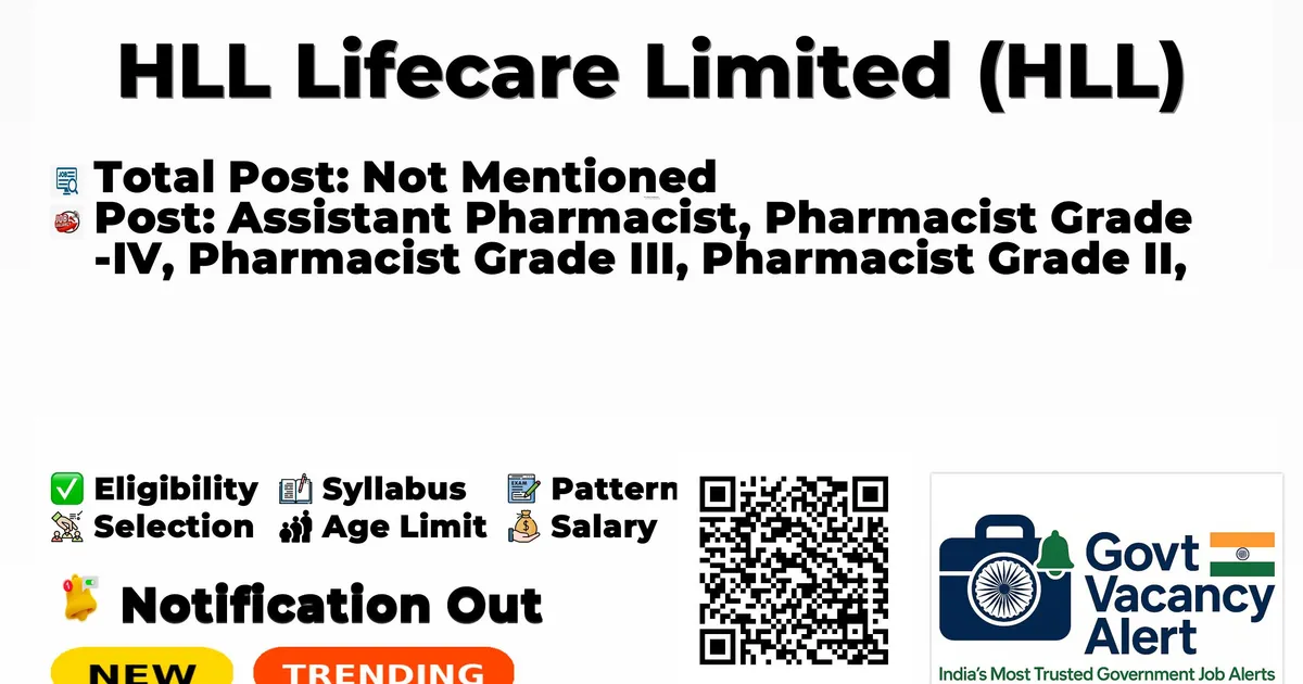 Company Name HLL Lifecare Limited (HLL) Post Name Assistant Pharmacist, Pharmacist Grade IV, Pharmacist Grade III, Pharmacist Grade II, Pharmacist Grade I No of Posts Not Mentioned Salary As per HLL norms Qualification D.Pharm/B.Pharm with relevant experience Age Limit Maximum 37 years (as on 01.01.2026) Walk-in Date 08/01/2026 Walk-in Time 10:00 AM to 12:00 PM Walk-in Venue Chanakya BNR Hotel, Station Rd, Sirom Toly, Kishan Singh Colony, Gosaintola, Ranchi, Jharkhand 834011