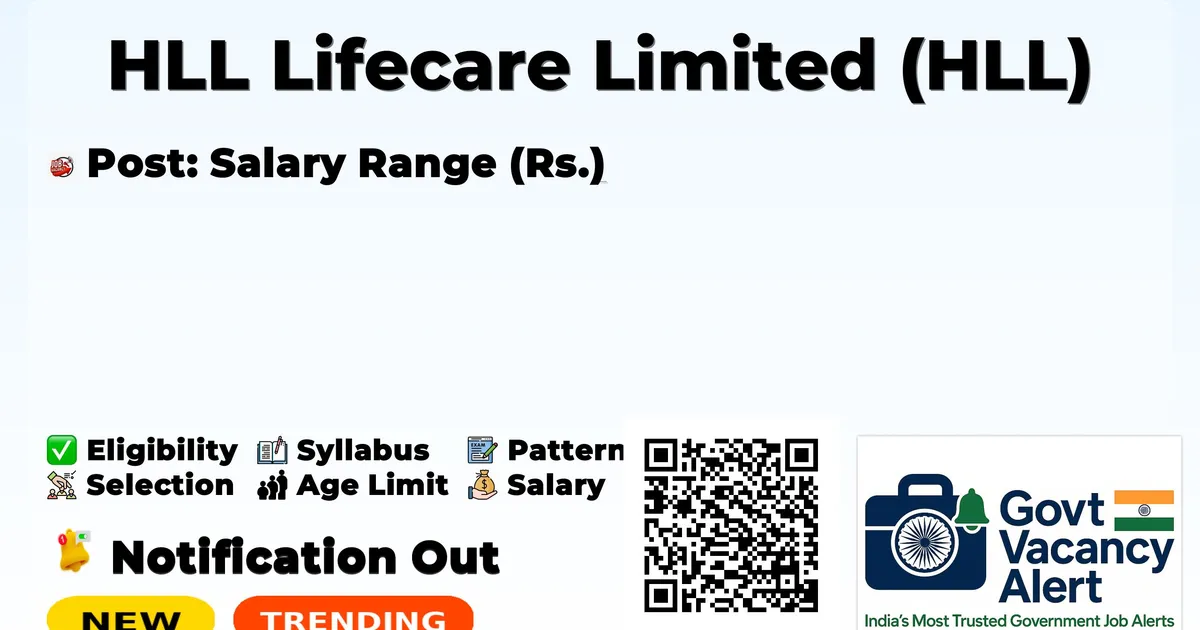 Company Name HLL Lifecare Limited (HLL) Post Name Various Positions Salary Rs. 10000-20000 to Rs. 14000-32500 Qualification DMLT/BSC(MLT) to MHA/MSC Healthcare & Hospital Management / Biomedical Engineering Age Limit Maximum age: 37 years as on 01.02.2026 Walk-in Date 25 February 2026 & 26 February 2026 Apply Mode Walk-in Job Type Contract