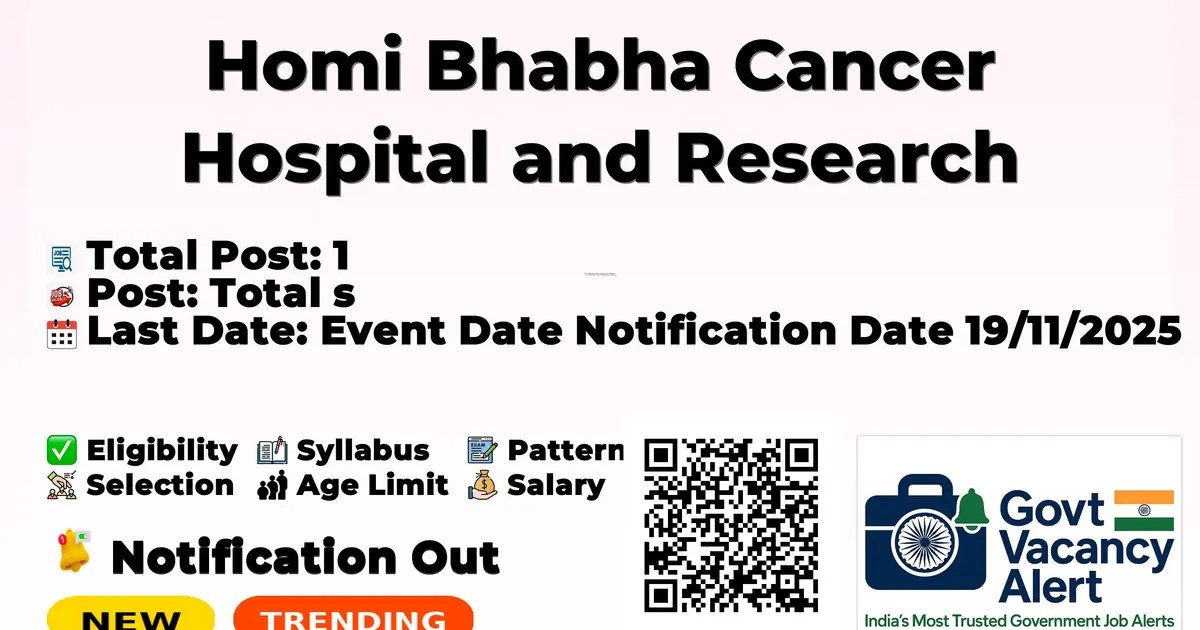 Homi Bhabha Cancer Hospital & Research Centre (HBCHRC) Recruitment 2025 for 01 posts of Medical Physicist. Candidates with M.Sc Can attend the walkin. The Walk-in starts from 25-11-2025, and ends on 19-12-2025. For detailed information please visit HBCHRC official website, tmc.gov.in.