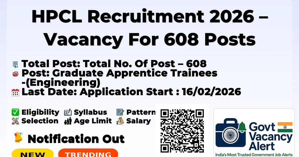 HPCL Recruitment 2026 – Vacancy For 608 Posts