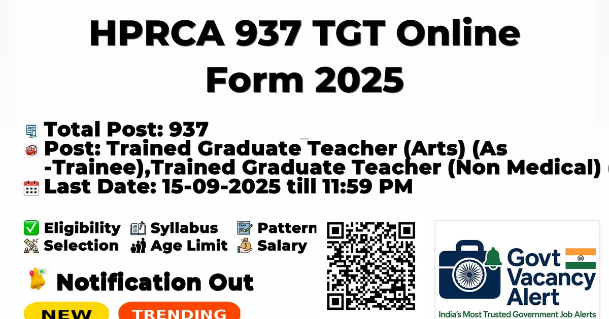 HPRCA 937 TGT Online Form 2025 — Trained Graduate Teacher (Arts) (As Trainee),Trained Graduate Teacher (Non Medical) (As Trainee),Trained Graduate Teacher (Medical) (As Trainee)