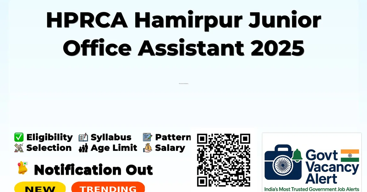 HPRCA Hamirpur Junior Office Assistant 2025 Apply Online — Latest Government Job