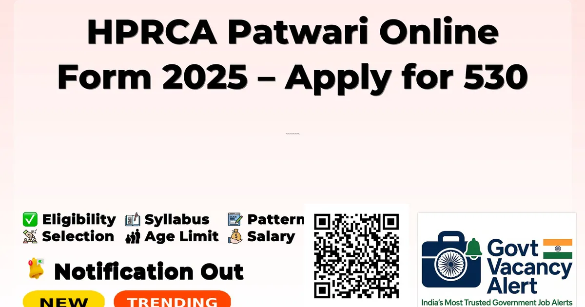 HPRCA Patwari Online Form 2025 – Apply for 530 Posts