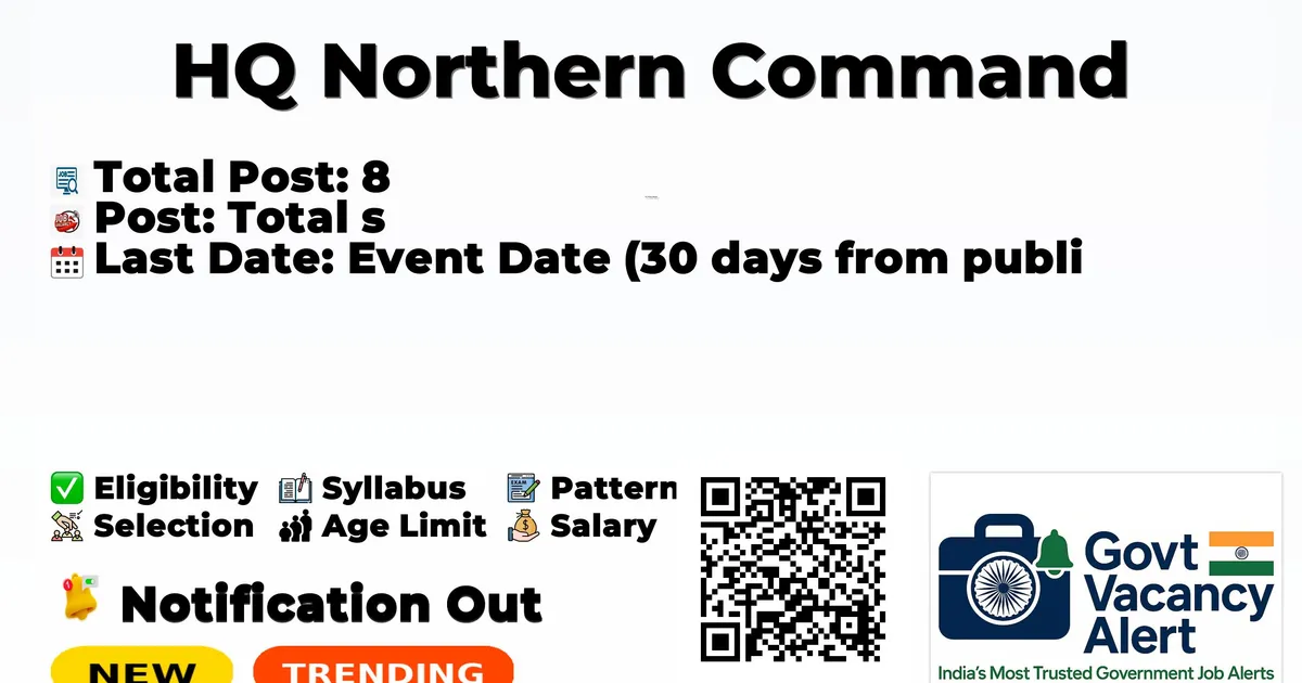 HQ Northern Command has officially released a notification for the recruitment of 8 Stenographer I Posts. This recruitment drive offers a great opportunity for candidates looking for government jobs. Interested and eligible candidates can download the application form from the official website and submit it offline. The offline application process is open until 12-04-2026, and candidates are advised to send their completed applications well before the deadline. In this article, you will find complete details about Stenographer I Recruitment 2026, including vacancy details, eligibility criteria, age limit, salary, selection process, application steps, and important links. Advertisement Company Name HQ Northern Command Post Name Stenographer Gde-I No of Posts 8 Salary Rs. 35400 - 112400 Per Month Qualification Stenographer Level-4 or equivalent with 10 years regular service Age Limit Max: 56 years Last Date 12 April 2026 Apply Mode Offline Candidates who are interested in applying for the HQ Northern Command Recruitment 2026 should first download and carefully read the official notification PDF. The notification contains complete details about vacancy distribution, eligibility criteria, age limit, stipend/salary, selection process, important dates, and application instructions. Reading the official document is important to ensure that you meet all requirements before submitting the application form. Download HQ Northern CommandStenographer IJob 2026 Notification PDF Post Name Total Posts Stenographer Gde-I 8 Total 8 Trending Govt Jobs SMC 2295 Clerk, Engineers and More Posts Online Form 2026 BFUHS Punjab Food Safety Officer Online Form 2026 IDBI Bank Junior Assistant Manager Online Form 2026 RRC Western Railway 5349 Apprentice Online Form 2026 Indian Navy Agniveer (MR) Online Form 2026 Officers holding post of Stenographer under the Central Government or State Government or UTs or Public Sector Undertaking or Recognized Research Institute or University or Semi-Government or Statutory or Autonomous Organisation, holding analogous posts on regular basis in the parent cadre or department or with ten years regular service rendered after appointment thereto on a regular basis in the Level-4 (Rs 25500-81100) or equivalent in the parent department. Category Fee General/OBC Nil SC/ST Nil Maximum Age Limit: 56 years Rs. 35400 - 112400 Per Month (Level-6, Rs. 35,400-1,12,400, Grade Pay-4200 Pre-revised) Event Date Last Date (30 days from publication) 12 April 2026 Interview Read the official notification carefully before applying. Download the application form from the official website: https://indianarmy.nic.in. Fill the application form carefully with correct information. Attach self-attested copies of required documents such as photograph, signature, ID proof, and certificates. Check all details carefully before submission. Send the completed application form to the address mentioned in the notification through Speed Post / Registered Post or as instructed. Ensure the application reaches before the last date: 12-04-2026. Keep a photocopy of the submitted application form for future reference. Link Description Link Official Notification PDF Click here Official Website Click here