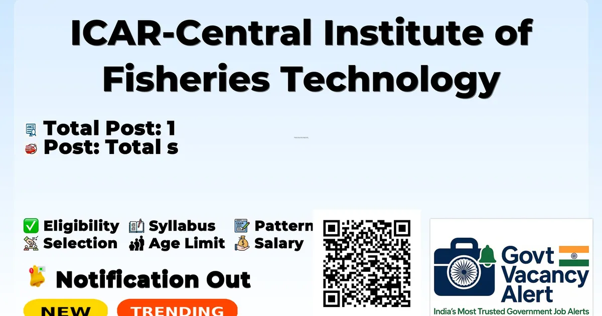 ICAR-Central Institute of Fisheries Technology (ICAR-CIFT) has officially announced a Walk-in Interview for the recruitment of 1 Project Associate Posts. This walk-in drive offers a great opportunity for candidates looking for government jobs. Candidates with B.E/B.Tech in Mechanical Engineering/ Electronics and Instrumentation Engineering/ Electrical and Electronics Engineering/ Electronics and communication Engineering/ Environmental Engineering or any other relevant disciplines, 1st class or 60% marks or equivalent overall GPA qualification can directly attend the interview on 09 March 2026. Candidates are advised to reach the walk-in venue on time with all original documents, self-attested photocopies, and recent passport-size photographs. In this article, you will find complete details about Project Associate Walk-in Recruitment 2026, including vacancy details, eligibility criteria, age limit, salary, walk-in schedule, venue address, and important links. Advertisement Company Name ICAR-Central Institute of Fisheries Technology (ICAR-CIFT) Post Name Project Associate No of Posts 1 Salary Rs. 25,000/- Per Month Qualification B.E/B.Tech Age Limit Min: 21 years, Max: 45 years Walk-in Date 09 March 2026 Apply Mode Walk-in Job Type Contract Candidates should download and read the ICAR-CIFT Jobs 2026 notification PDF carefully to check vacancy details, eligibility, age limit, and application instructions. The notification also includes important dates and selection process details. The direct download link is available in the Important Links section below. Download ICAR-CIFT Project Associate Job 2026 Notification PDF Post Name Total Posts Project Associate 1 Total 1 Trending Govt Jobs RRB 22000 Group D Online form 2026 Indian Army Agniveer Recruitment Rally Notification 2026 AIIMS NORCET 10 Online Form 2026 HPCL 731 Engineers, JEA and More Online Form 2026 RBI 650 Assistant Online Form 2026 Project Associate: B.E/B.Tech in Mechanical Engineering/ Electronics and Instrumentation Engineering/ Electrical and Electronics Engineering/ Electronics and Communication Engineering/ Environmental Engineering or any other relevant disciplines, with a 1st class or 60% marks or equivalent overall GPA. Category Fee General/OBC Nil SC/ST Nil Minimum Age: 21 years Maximum Age: 45 years Age relaxation: 3 years for OBC candidates and 5 years for SC/ST candidates. Rs. 25,000/- Per Month Event Date Walk-in Interview 09 March 2026 Contract Duration Upto 30 April 2026 Walk-in Interview Candidates who wish to attend the walk-in interview for ICAR-CIFT Project Associate Recruitment 2026 should follow the steps below. Read the official notification carefully before attending the interview. Candidates must report at the venue as per the reporting time mentioned in the notification. Carry all original documents along with one set of self-attested photocopies such as ID proof, educational certificates, experience certificates (if required), and category certificate (if applicable). Bring the duly filled application form if required in the notification. Verify eligibility criteria before attending the interview. Candidates are advised to reach the venue well in advance to complete registration formalities. Keep extra passport-size photographs for submission if required. Link Description Link Official Notification PDF Click here Official Website Click here