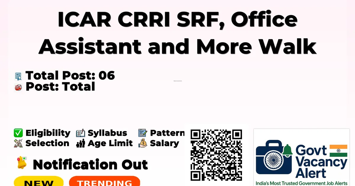 ICAR CRRI SRF, Office Assistant and More Walk in 2025 — Total