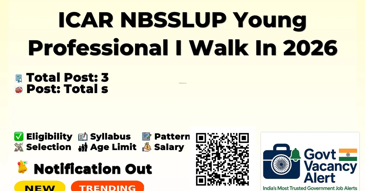 ICAR NBSSLUP Young Professional I Walk In 2026 — Total Posts