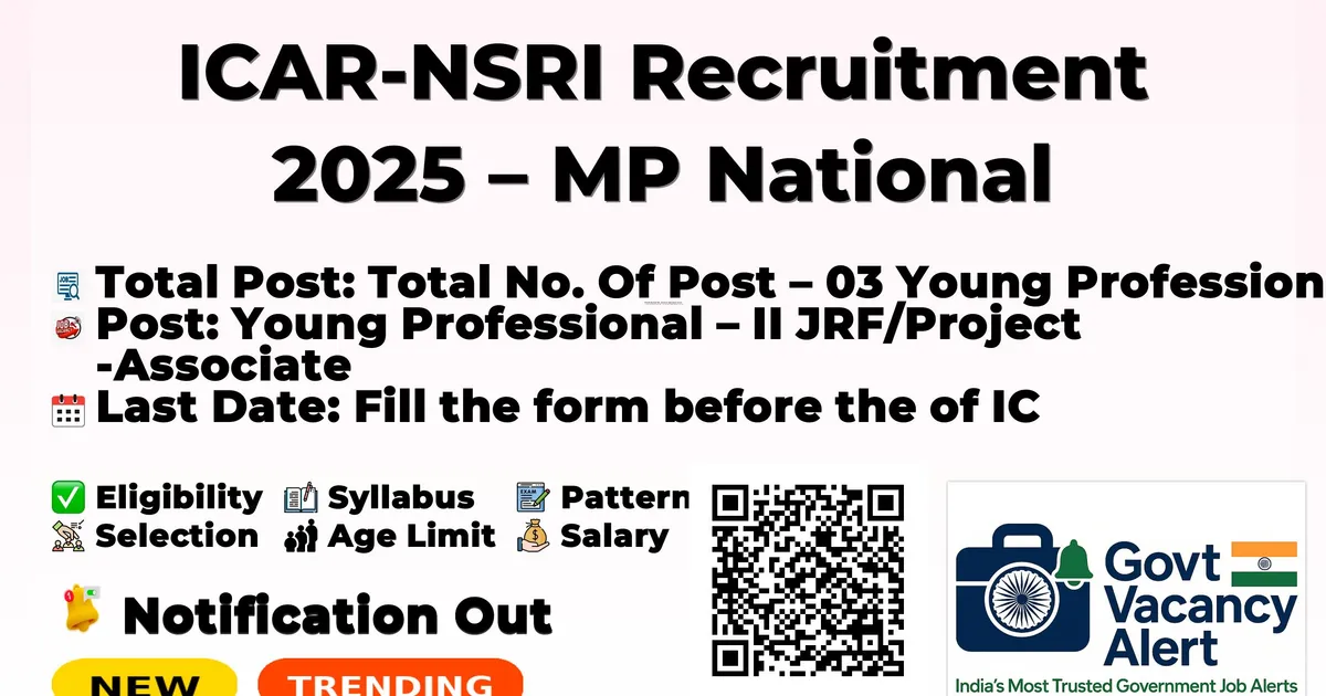 Last Date: Fill the form before the last date of ICAR – NSRI Recruitment ends, otherwise your form will not be Submitted before the last date.
