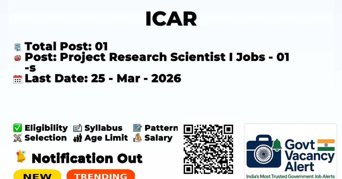 ICAR — Project Research Scientist I Jobs - 01 Posts