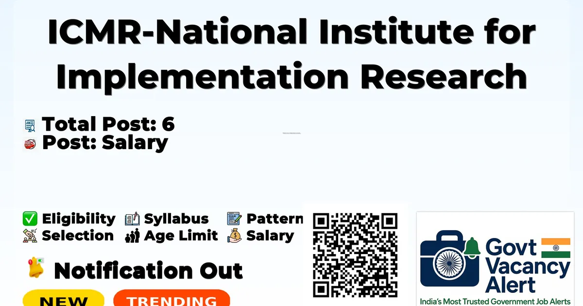 ICMR-National Institute for Implementation Research on Non-Communicable Diseases (ICMR-NIIRNCD) Recruitment 2026: ICMR-National Institute for Implementation Research on Non-Communicable Diseases is conducting a Walk-in Interview for 6 Project Human Resource Positions posts. This recruitment provides an excellent opportunity for eligible candidates to attend the interview directly without any prior online application.