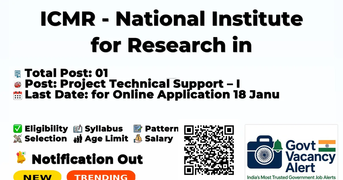 ICMR National Institute for Research in Reproductive and Child Health (ICMR NIRRCH) has released an official notification for the recruitment of 01 Project Technical Support I Posts. Interested and eligible candidates can apply Online through the official ICMR NIRRCH website. The last date to submit the application form is 18-01-2026. In this article, you’ll find the ICMR NIRRCH Project Technical Support I Posts recruitment details, including eligibility criteria, age limit, salary structure, selection process, application steps, and direct links to the official notification and Online application form.