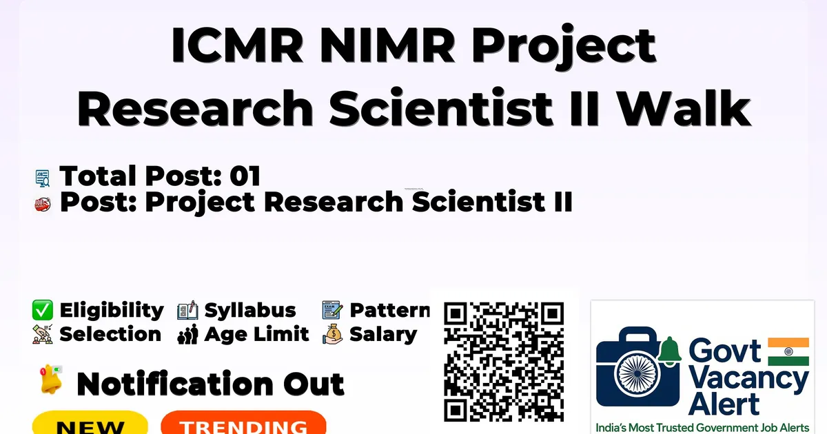 ICMR NIMR Project Research Scientist II Walk in 2025 — Project Research Scientist II