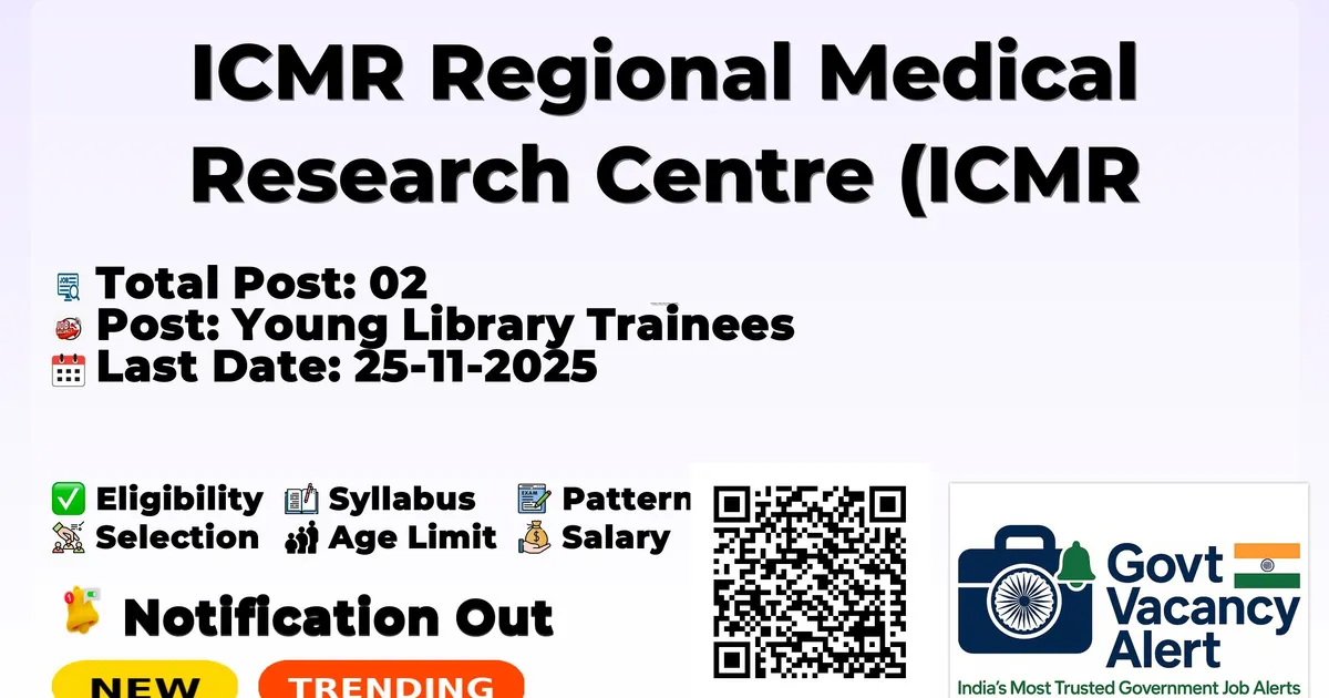 ICMR Regional Medical Research Centre (ICMR RMRC) has released an official notification for the recruitment of 02 Young Library Trainees Posts. Interested and eligible candidates can apply Offline through the official ICMR RMRC website. The last date to submit the application form is 25-11-2025. In this article, you’ll find the ICMR RMRC Young Library Trainees Posts recruitment details, including eligibility criteria, age limit, salary structure, selection process, application steps, and direct links to the official notification and Offline application form.
