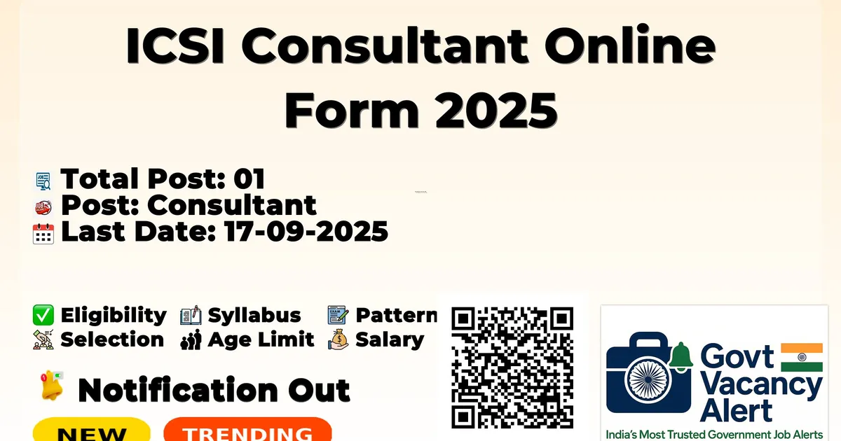 The ICSI Consultant Recruitment 2025 Notification PDF has been released on 11-09-2025 at icsi.edu. Check the complete job details, vacancy, age limit, application fee, selection process and how to apply from the article. You can Check all Latest Sarkari Result Updates of All Central Government Jobs and State Government Jobs.