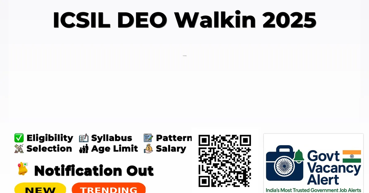 Intelligent Communication Systems India Ltd. (ICSIL) has announced the recruitment for Data Entry Operator (DEO) positions on a contractual outsourced basis. These positions are for deployment in the Department of Food, Supplies & Consumer Affairs, Government of NCT of Delhi. Interested candidates are invited to attend the walk-in interview on 18th September 2025. Below is all the important information you need to know about this recruitment, including eligibility criteria, salary, registration fees, and how to apply.