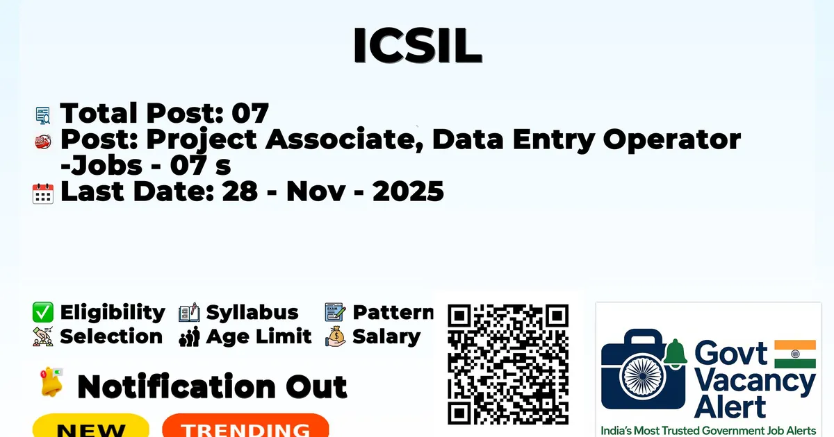 The Intelligent Communication Systems India Limited (ICSIL) has officially released the notification to fill the vacancies of 07 Project Associates and Data Entry Operator Posts. Interested and eligibile candidates can use this opportunity to apply for these posts before the last date of application. Candidates who have completed their Any Degree, LLB can apply for the ICSIL Notification 2025. The interested applicants can attend the walk-in interview. Here we have mentioned the education details, age limit, selection process, application fee, salary, and how to apply for these posts before the deadline. The application dates have already begun.