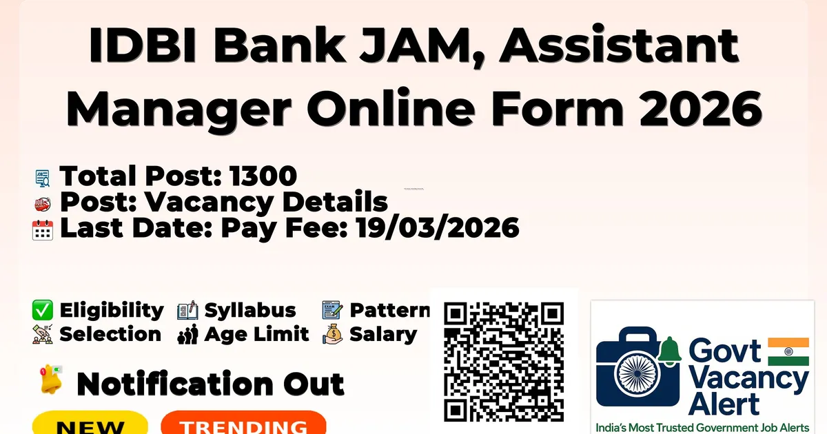IDBI Bank JAM, Assistant Manager Online Form 2026 — Vacancy Details