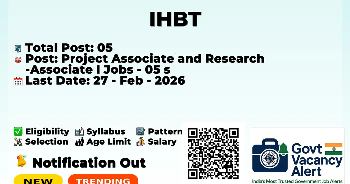 Institute of Himalayan Bioresource Technology (IHBT) has declared the official notification for 2026. To fill up the 05 vacancies for Project Associate and Research Associate I Jobs. Those candidates who have qualified in the M.Pharm, M.Sc, B.E/ B.Tech, and Ph.D can grab this chance and apply for the IHBT Recruitment 2026. Here, we included the age limit, selection process, salary structure, education details, application fee, and how to apply for these posts. Interested candidates can attend the walk-in at the address below.
