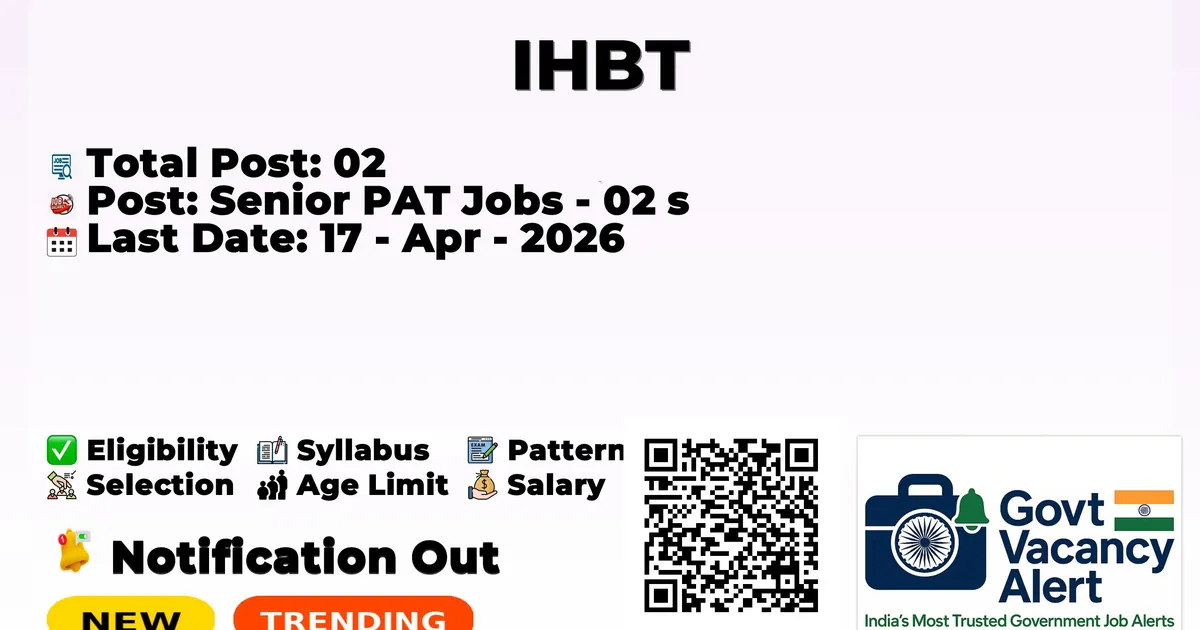 Institute of Himalayan Bioresource Technology (IHBT) has declared the official notification for 2026. To fill up the 02 vacancies for Senior PAT Jobs. Those candidates who have qualified in the M.Sc, M.Pharm, Ph.D can grab this chance and apply for the IHBT Notification 2026. Here we included the age limit, selection process, salarystructure, education details, application fee, and how to apply for these posts.