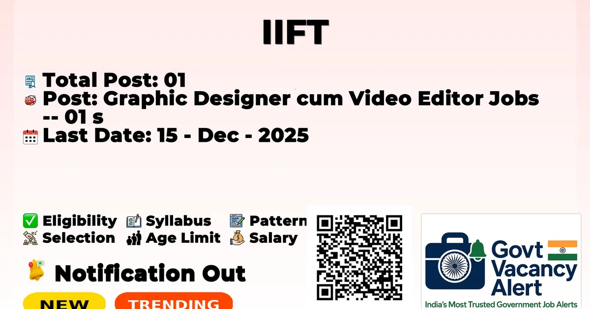 The Indian Institute of Foreign Trade (IIFT) has officially released the notification to fill the vacancies of 01 Graphic Designer cum Video Editor Posts. Interested and eligible candidates can use this opportunity to apply for these posts before the last date of application. Candidates who have completed their B.E./B. Tech, M.E./M. Tech and Diploma holders can apply for the IIFT Notification 2025. The interested applicants can apply in online mode. Here we have mentioned the education details, age limit, selection process, application fee, salary, and how to apply for these posts before the deadline. The application dates have already begun.