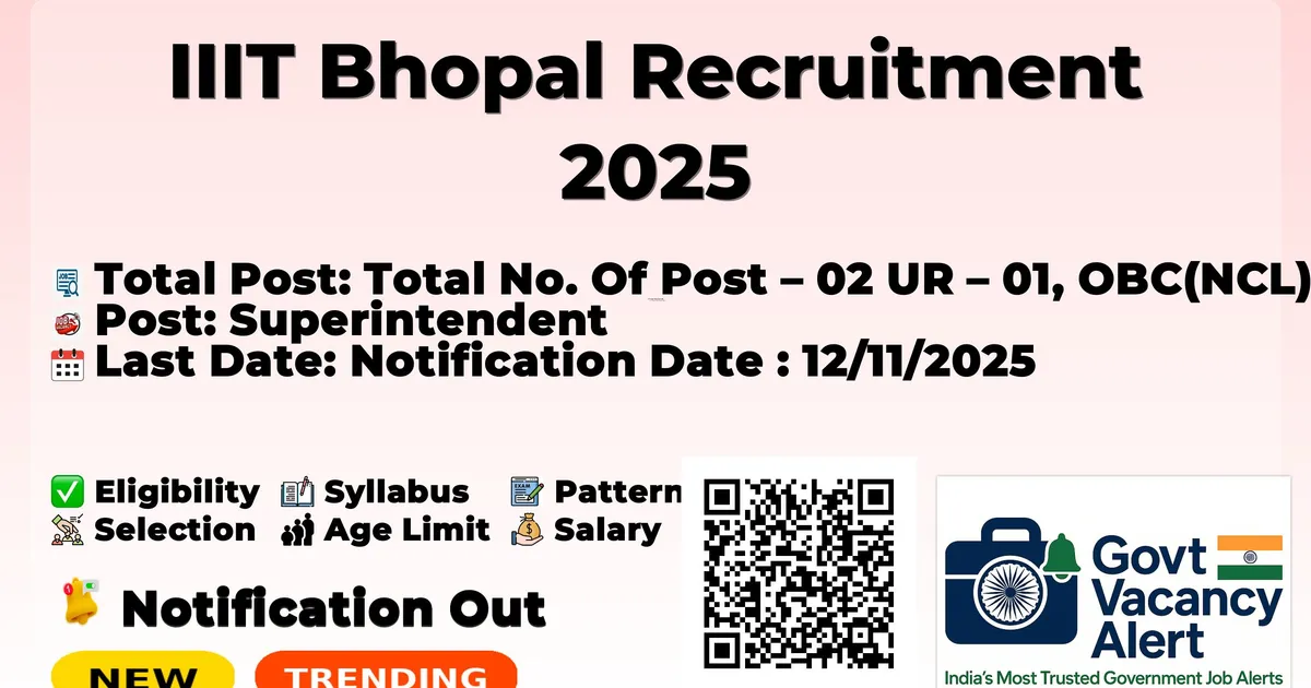 Dear friends, Indian Institute of Information Technology (IIIT) Bhopal has released IIIT Bhopal Recruitment 2025. All the candidates who like government job can see the PDF of IIIT Bhopal Notification 2025. Eligible and interested candidates can apply for this job before the last date. Candidates read this article till the end to get the dates, qualifications, age limit, fees, application and other information of IIIT Bhopal Recruitment Form 2025.