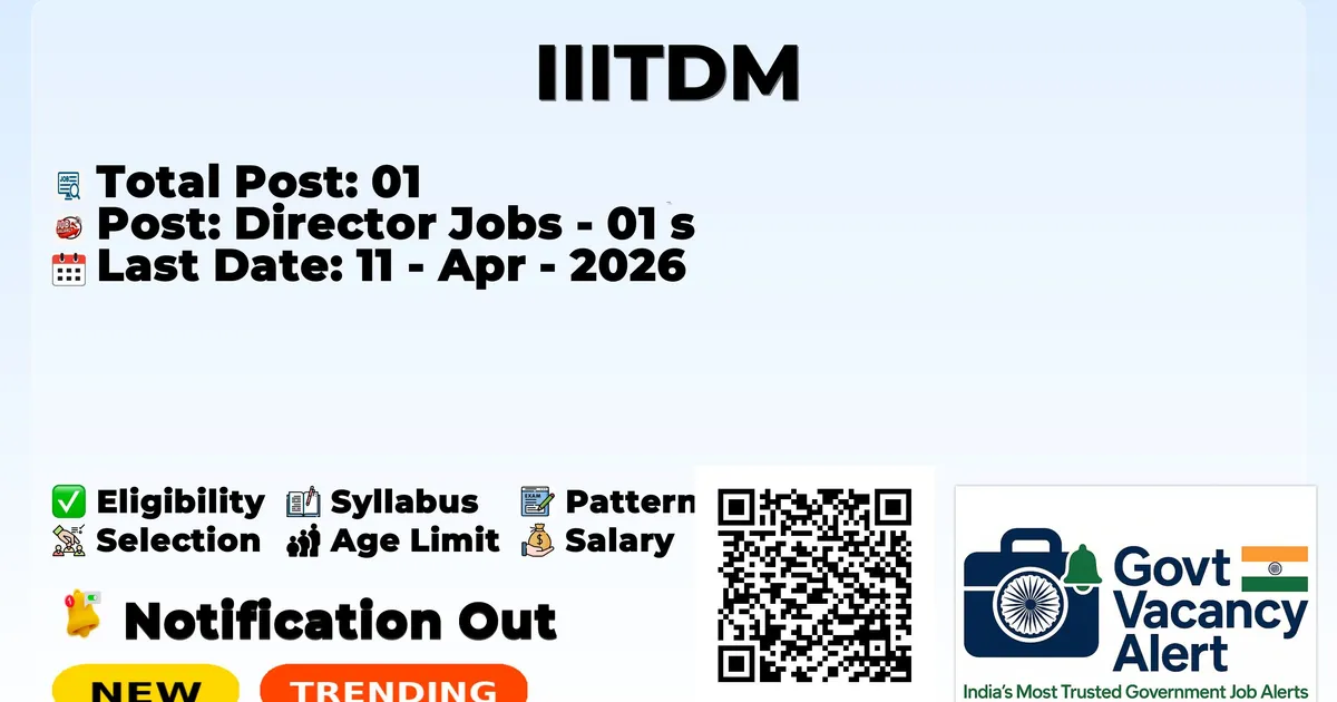 Indian Institute of Information Technology Design & Manufacturing (IIITDM) Kancheepuram has declared the official notification for 2026. To fill up the various vacancies for Director Jobs. Those candidates who have qualified for the Ph.D can grab this chance and apply for the IIITDM Kancheepuram Recruitment 2026. Here we included the age limit, selection process, salary structure, education details, applciation fee, and how to apply for these posts.