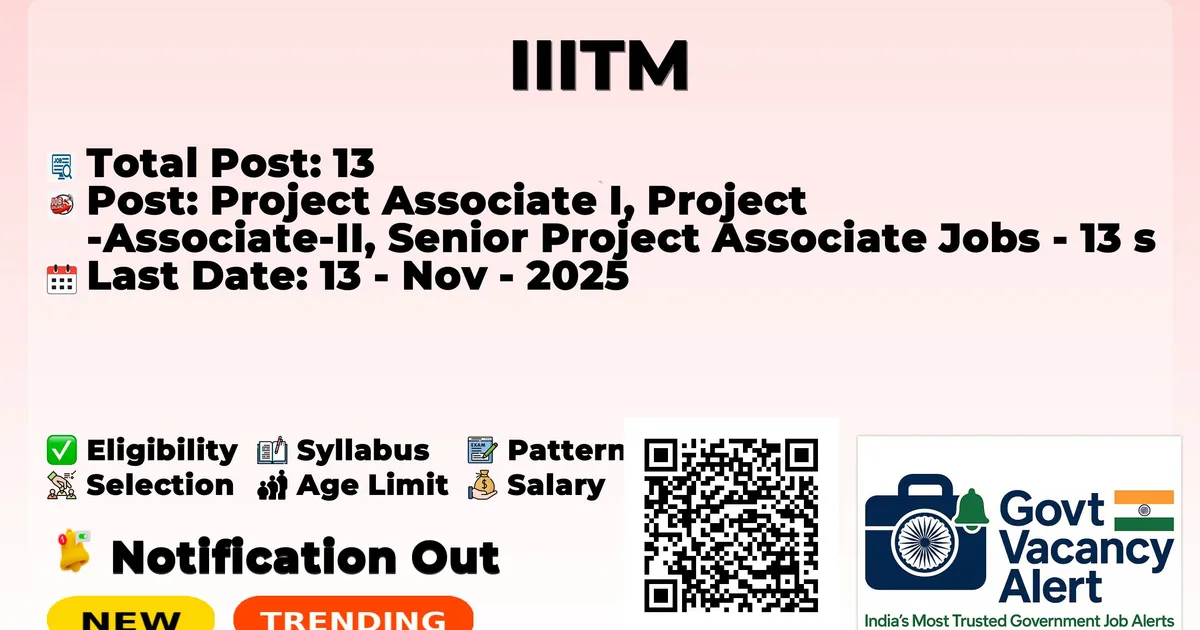 The Indian Institute of Tropical Meteorology, Pune (IITM Pune) has officially released the notification to fill the vacancies of 13 Project Associate I, Project Associate-II, and Senior Project Associate Jobs. Interested and eligibile candidates can use this opportunity to apply for these posts before the last date of application. Candidates who have completed their B.E./B. Tech and M.Sc. can apply for the IITM Pune Jobs 2025. The interested applicants can attend the walk-in interview. Here we have mentioned the education details, age limit, selection process, application fee, salary, and how to apply for these posts before the deadline. The application dates have already begun.