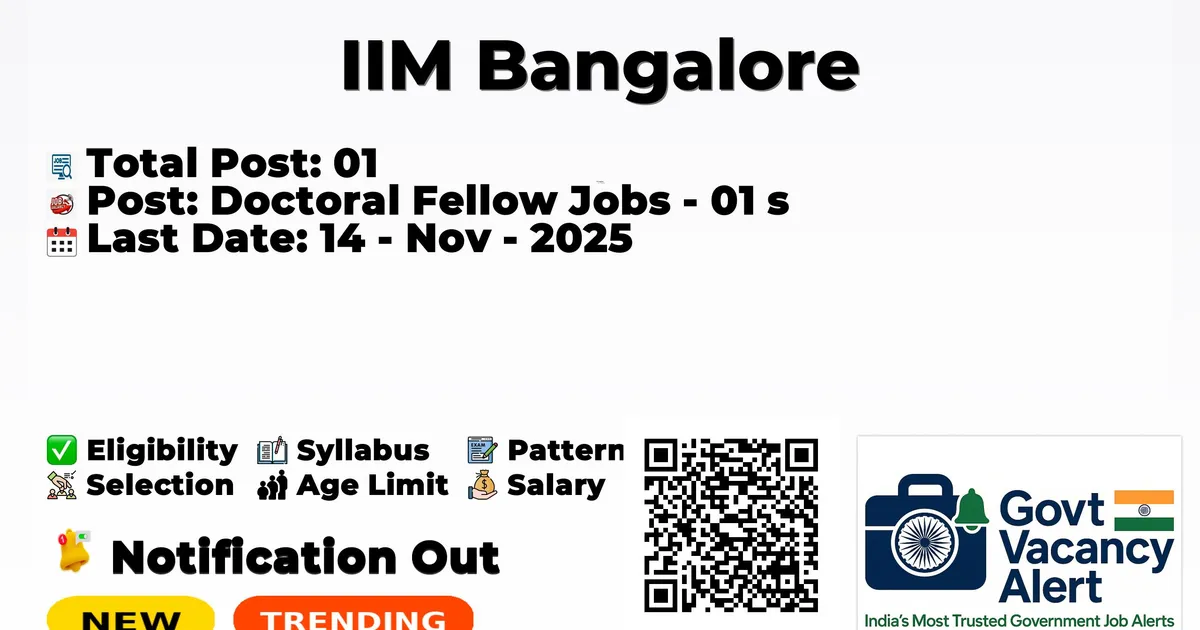 Indian Institute of Management Bangalore (IIMB) has declared the official notification for 2025. To fill up the vacancies for Post-Doctoral Fellow Jobs. Those candidates who have qualified in the Post Graduation, Ph.D, can grab this chance and apply for the IIM Bangalore Recruitment 2025. Here we include the age limit, selection process, salary structure, education details, application fee, and how to apply for these posts. Interested and eligible candidates can apply online before the last date of application.
