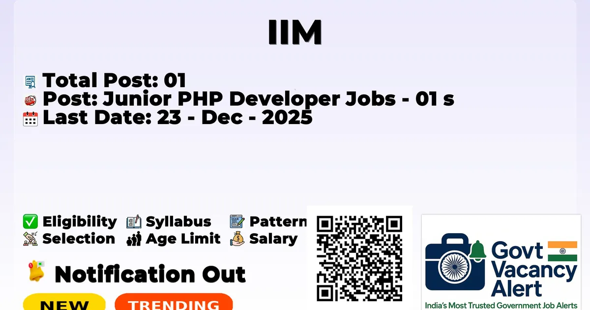 The Indian Institute of Management Mumbai (IIM Mumbai) has officially released the notification to fill the vacancies of 01 Junior PHP Developer Posts. Interested and eligibile candidates can use this opportunity to apply for these posts before the last date of application. candidates who have completed their B.E./B. Tech, M.E./M. Tech in Computer Science Engineering can apply for the IIM Mumbai Jobs 2025. The interested applicants can apply in online mode. Here we have mentioned the education details, age limit, selection process, application fee, salary, and how to apply for these posts before the deadline. The application dates have already begun.