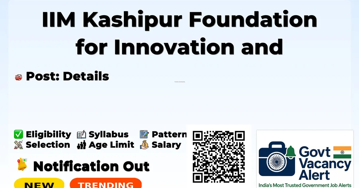 IIM Kashipur Foundation for Innovation and Entrepreneurship Development ( IIM Kashipur) — Details