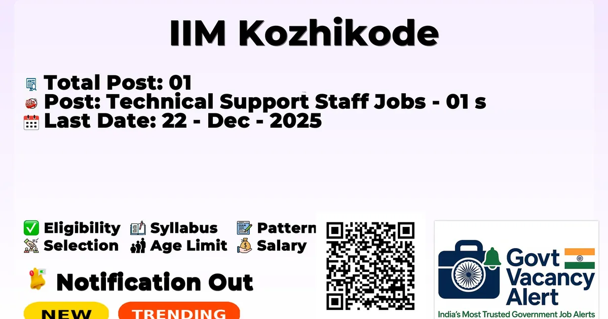 IIM Kozhikode — Technical Support Staff Jobs - 01 Posts