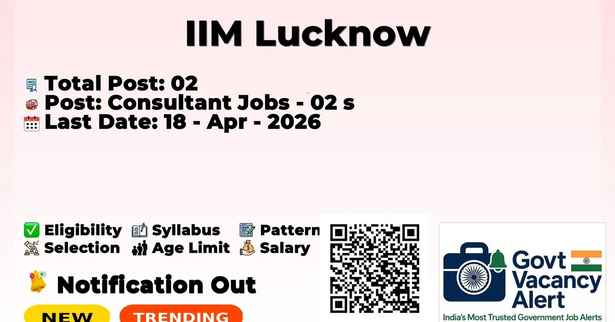 The Indian Institute of Management Lucknow (IIM Lucknow) has officially released the notification to fill the vacancies of 02 Consultant Posts. Interested and eligibile candidates can use this opportunity to apply for these posts before the last date of application. Candidates who have completed any degree can apply for the IIM Lucknow Jobs 2026. The interested applicants can apply in online mode. Here we have mentioned the education details, age limit, selection process, application fee, salary, and how to apply for these posts before the deadline. The application dates have already begun.