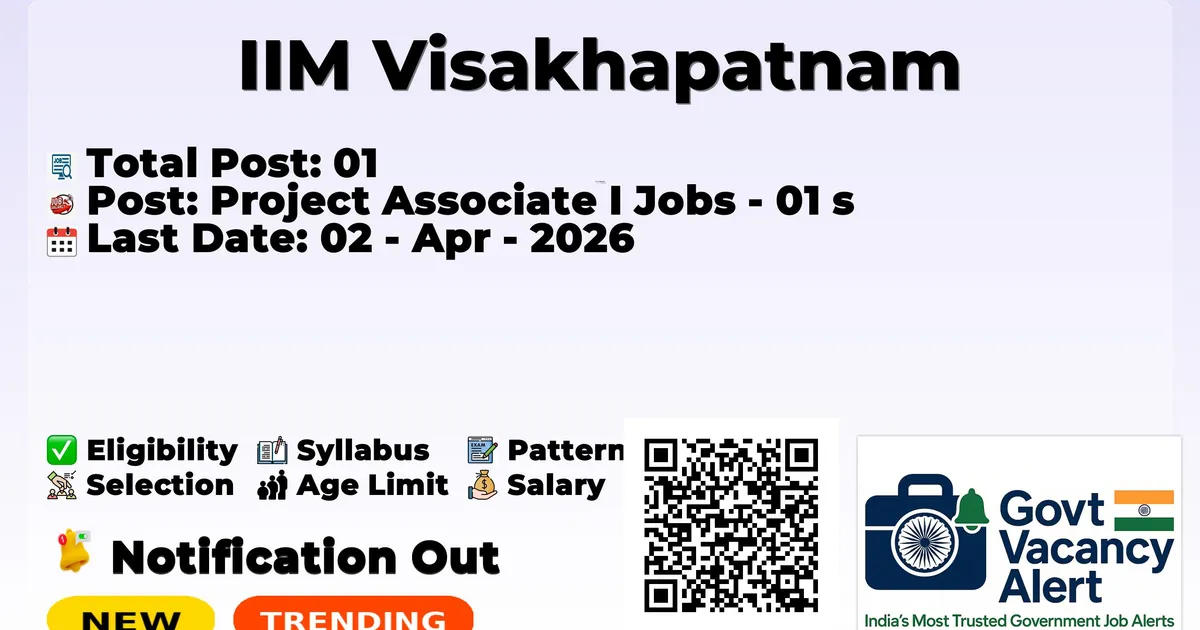 The Indian Institute of Management Visakhapatnam (IIM Visakhapatnam) has officially released the notification to fill the vacancies of 01 Project Associate I Posts. Interested and eligibile candidates can use this opportunity to apply for these posts before the last date of application. Candidates who have completed their MBA, B.E./B. Tech can apply for the IIM Visakhapatnam Jobs 2026. The interested applicants can apply in online mode. Here we have mentioned the education details, age limit, selection process, application fee, salary, and how to apply for these posts before the deadline. The application dates have already begun.