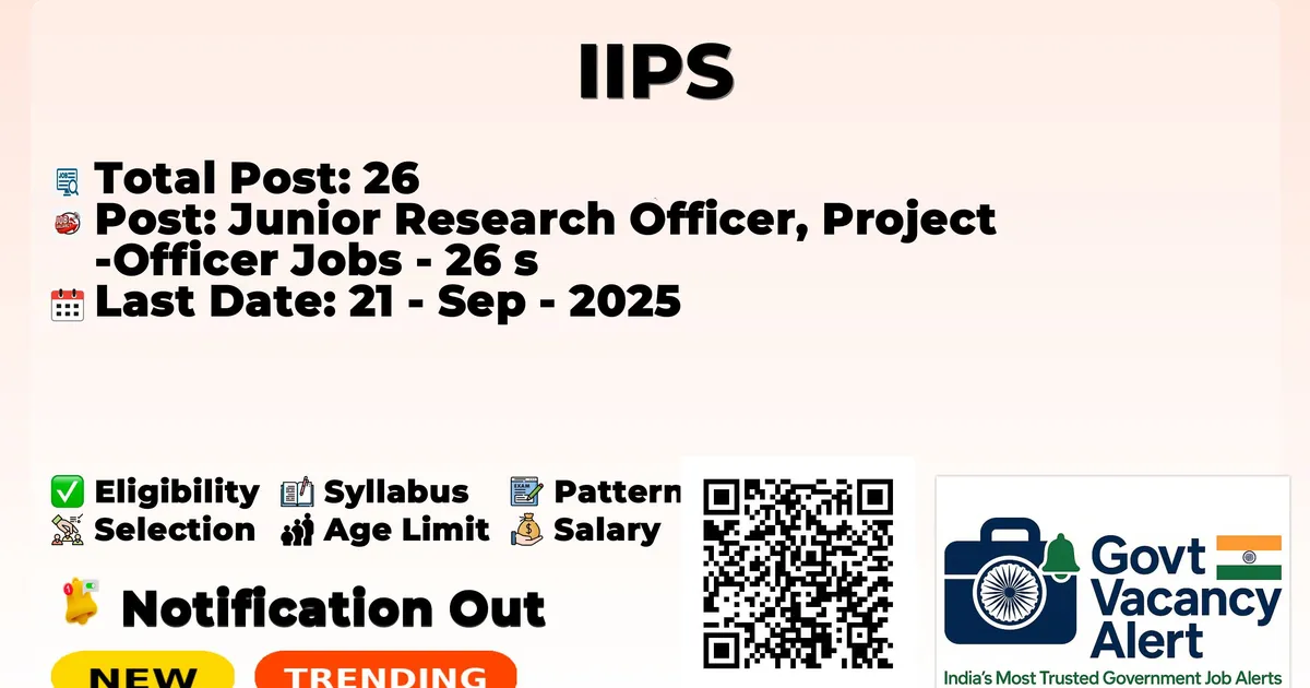 The International Institute for Population Sciences (IIPS) has officially released the notification to fill the vacancies of 26 Junior Research Officers, Project Officers. The interested and eligible candidates can use this opportunity to apply for these posts before the last date of application. Candidates who have completed their Post-graduation, B.E./B. Tech in Computer Science Engineering, MCA, and M.Sc. can apply for the IIPS Recruitment 2025. The interested applicants can apply in online mode. Here we have mentioned the education details, age limit, selection process, application fee, salary, and how to apply for these posts before the deadline. The application dates have already begun.