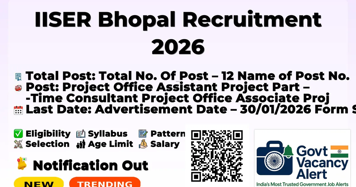 Dear friends, Indian Institute of Science Education and Research (IISER), Bhopal has released IISER Bhopal Recruitment 2026. All the candidates who like government job can see the PDF of IISER Bhopal Notification 2026. Eligible and interested candidates can apply for this job before the last date. Candidates read this article till the end to get the dates, qualifications, age limit, fees, application and other information of IISER Bhopal Recruitment Online Form 2026.