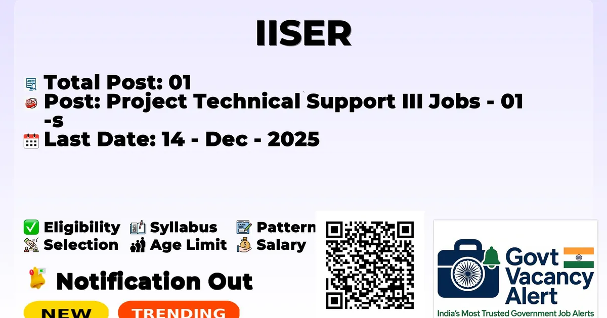 IISER — Project Technical Support III Jobs - 01 Posts