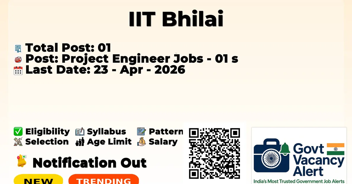 Indian Institute of Technology Bhilai (IIT Bhilai) has declared the official notification for 2026. To fill up the vacancies for various Project Engineer Jobs. Those candidates who have qualified in the B.E/ B.Tech, M.E/ M.Tech can grab this chance and apply for the IIT Bhilai Recruitment 2026. Here we included the age limit, selection process, salary structure, education details, applciation fee, and how to apply for these posts.