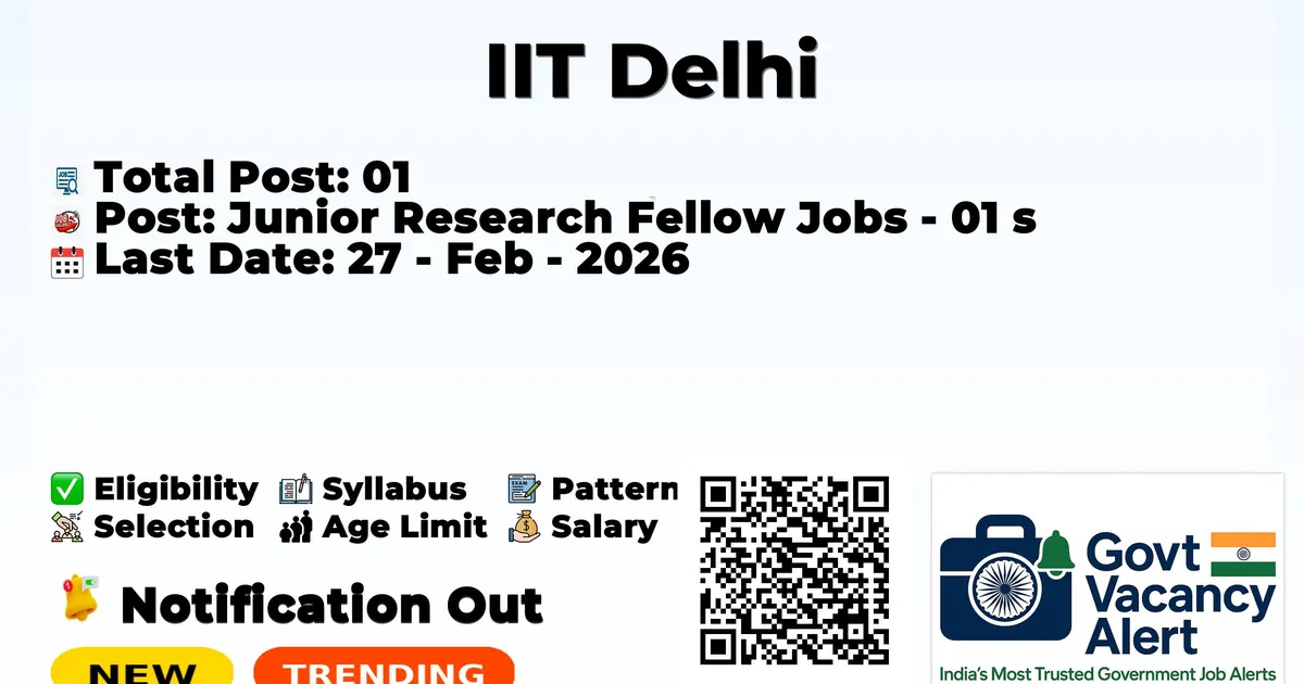 Indian Institute of Technology Delhi (IIT Delhi) has declared the official notification for 2026. To fill up the various vacancies for Junior Research Fellow Jobs. Those candidates who have qualified in the B.E/ B.Tech, M.E/ M.Tech in Electrical Engineering can use this opportunity and apply for the IIT Delhi Notification 2026. Interested and eligible candidates can apply before the last date of application. Here we have mentioned more details about the age limit, selection process, salary structure, education details, application fee, and how to apply for these posts.