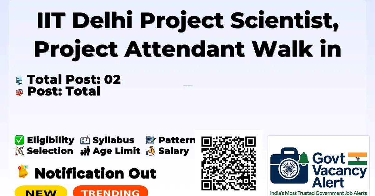 IIT Delhi Project Scientist, Project Attendant Walk in 2025 — Total