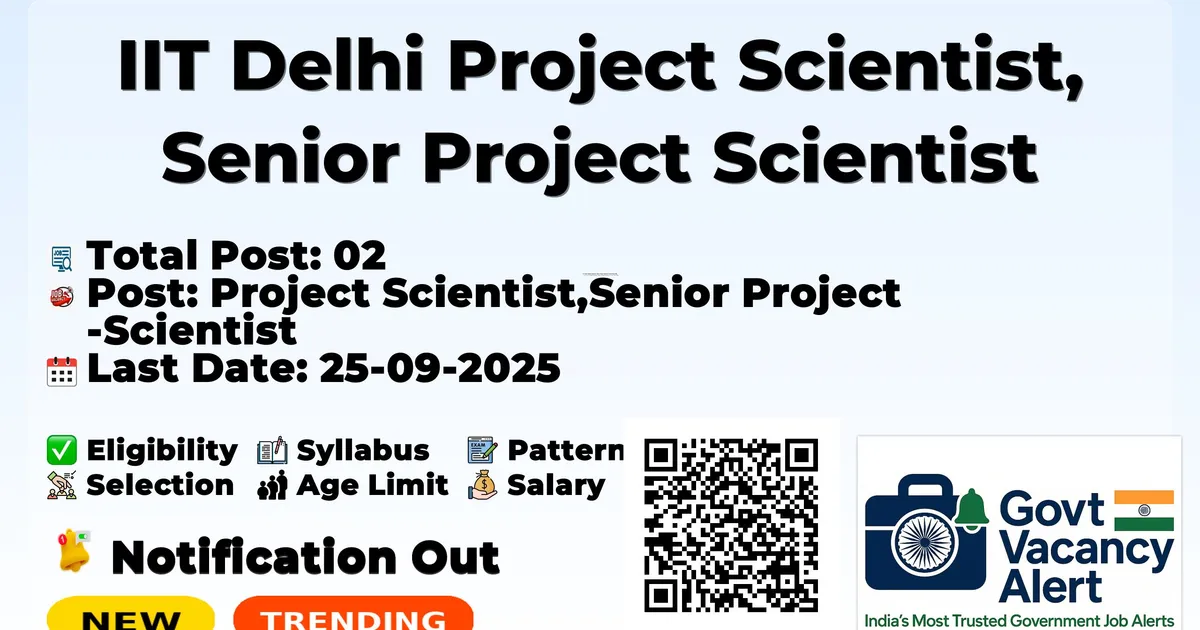 The IIT Delhi Project Scientist, Senior Project Scientist Recruitment 2025 Notification PDF has been released on 12-09-2025 at ird.iitd.ac.in. Check the complete job details, vacancy, age limit, application fee, selection process and how to apply from the article. You can Check all Latest Sarkari Result Updates of All Central Government Jobs and State Government Jobs.
