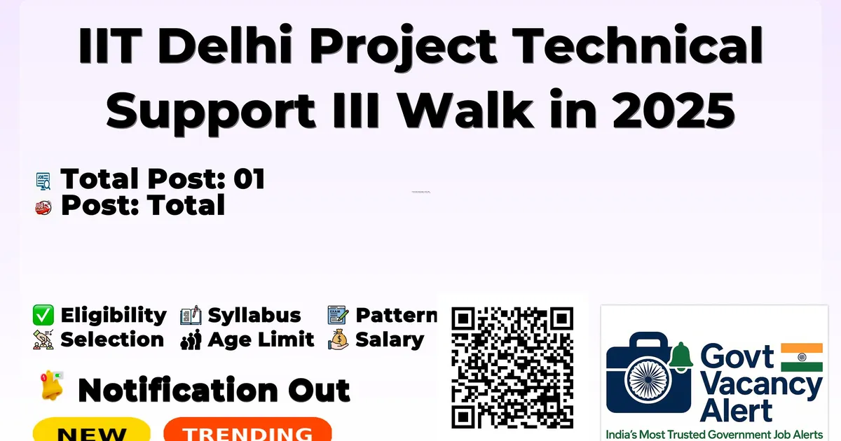 IIT Delhi Project Technical Support III Walk in 2025 — Total