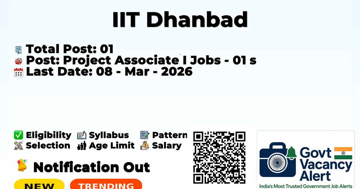 The Indian Institute of Technology Dhanbad (IIT ISM Dhanbad) has officially released the notification to fill the vacancies of 01 Project Associate I Posts. Interested and eligibile candidates can use this opportunity to apply for these posts before the last date of application. Candidates who have completed their M.E./M. Tech, B.E./B. Tech in Civil Engineering can apply for the IIT ISM Dhanbad Jobs 2026. The interested applicants can apply in offline mode. Here we have mentioned the education details, age limit, selection process, application fee, salary, and how to apply for these posts before the deadline. The application dates have already begun.